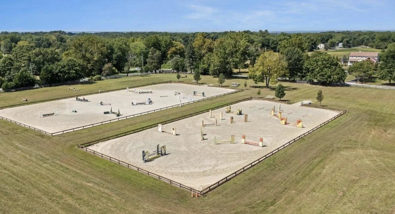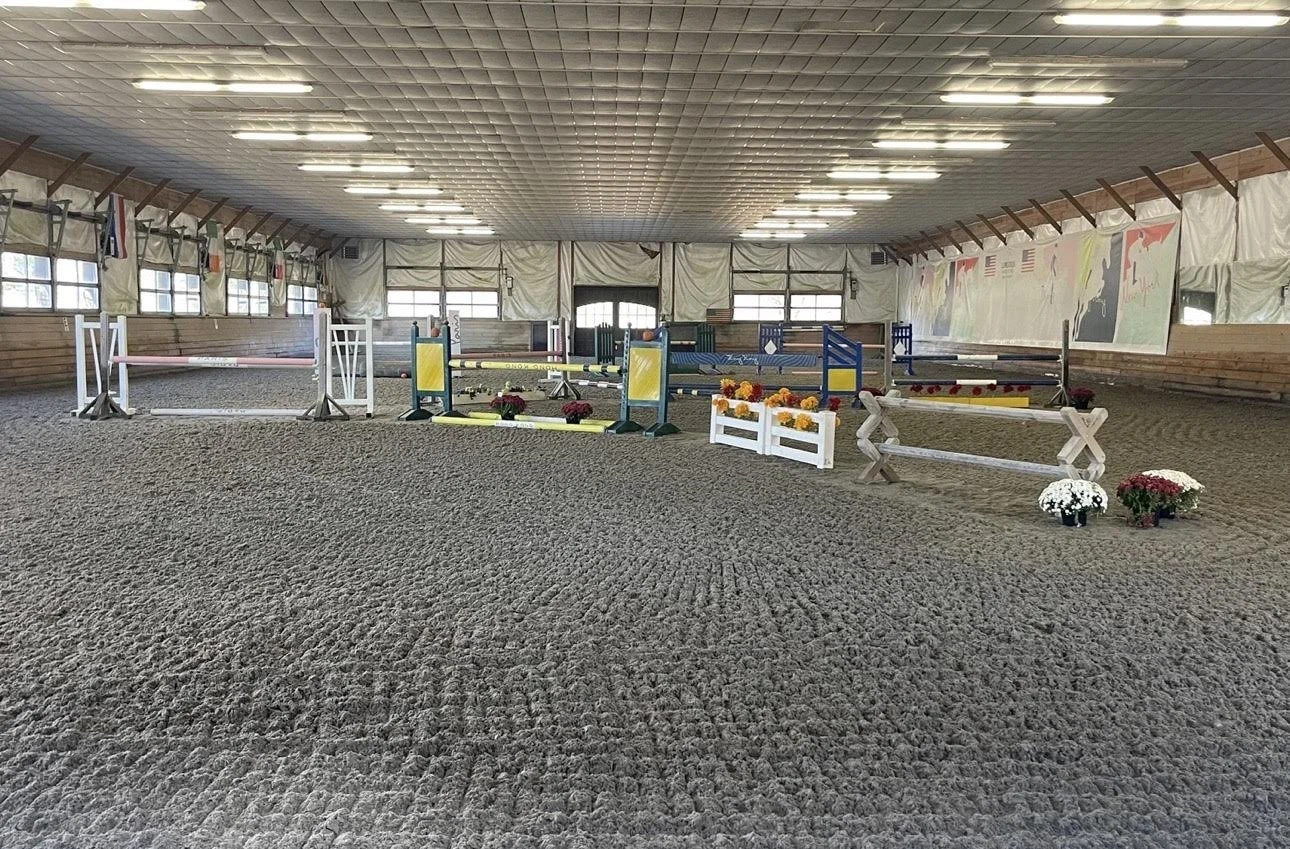 A fully enclosed heated indoor arena with mirrors and led lighting for year-round riding (Windows that open in summer)